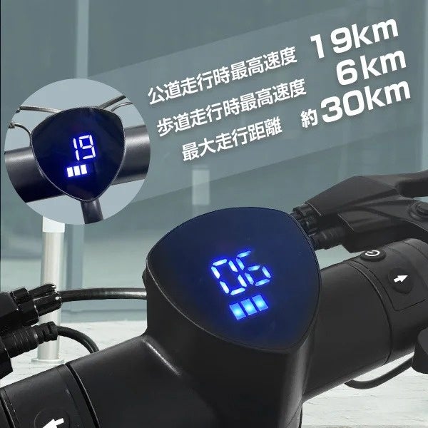 見やすい液晶ディスプレイで、バッテリー残量と走行スピードを誰でも簡単に確認可能。