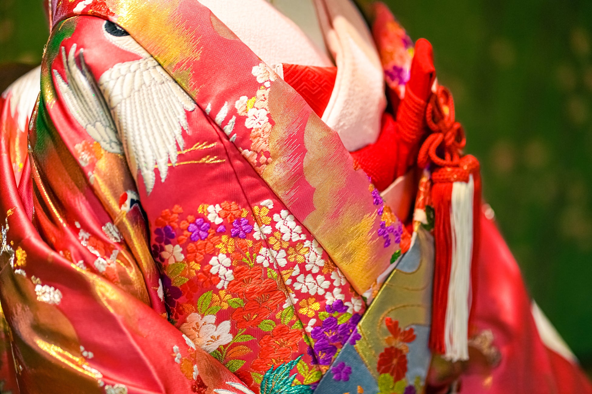 日出町と別府市内からお借りした、約40~50年前に婚礼衣装として使用された絢爛豪華な打掛を展示します。春を感じさせる華やかな柄の衣装が並ぶ別府湾を望む会場では、お琴の演奏もお楽しみいただけます。雅な日本文化に触れるひと時をお楽しみください。