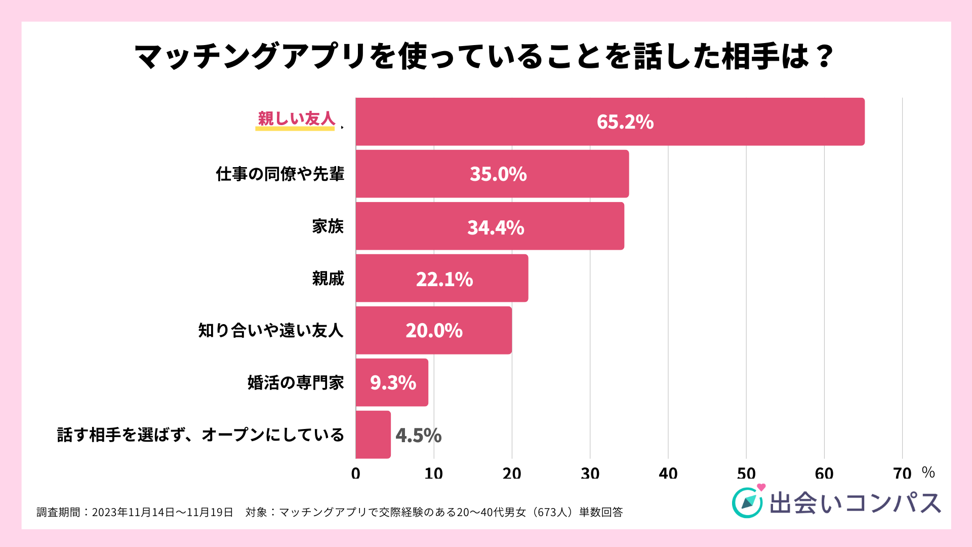 マッチングアプリを利用していることを共有した相手、1位は「親しい友人」