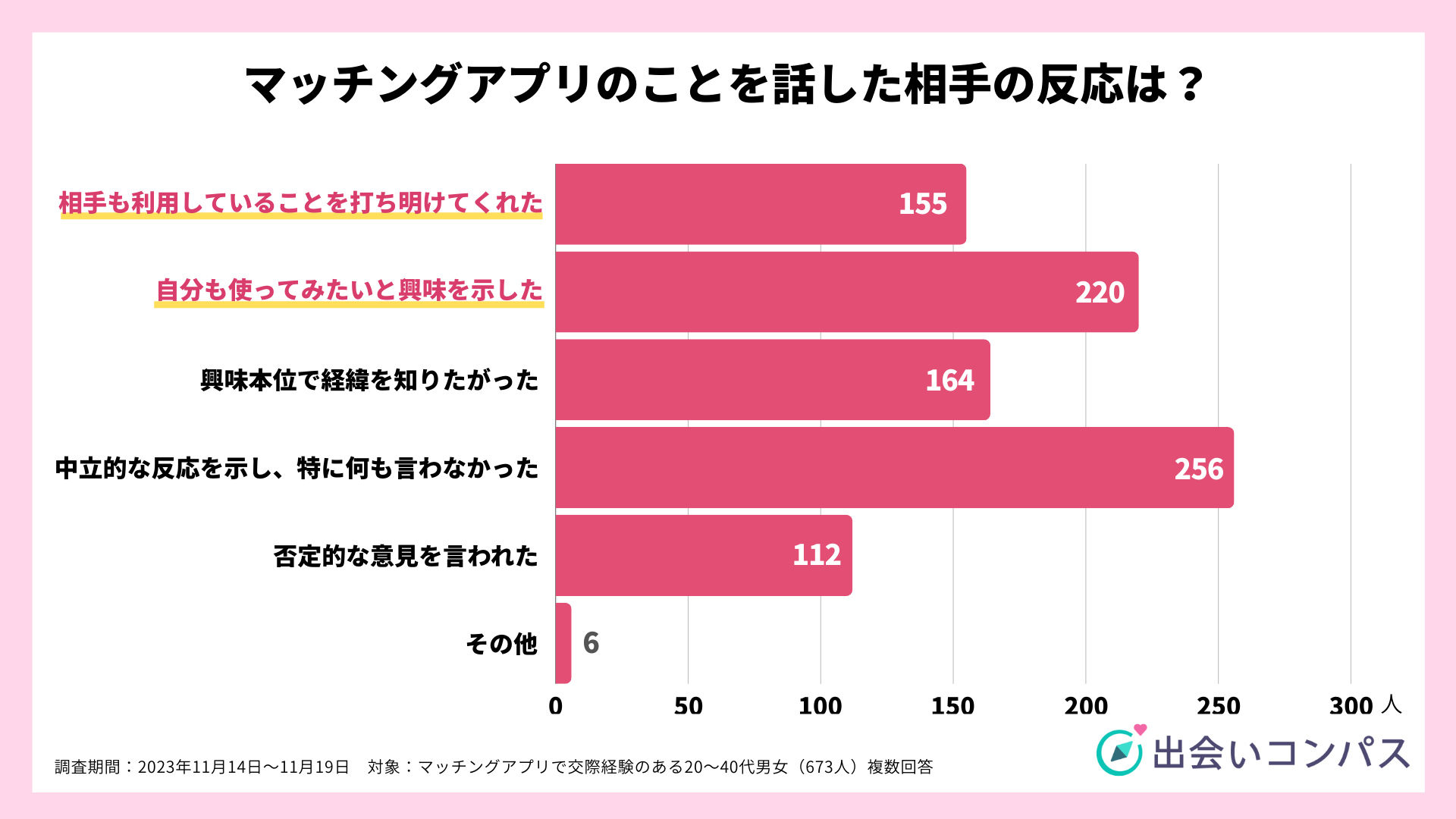 マッチングアプリの利用に対する相手の反応、「自分も使ってみたい」が41.6%