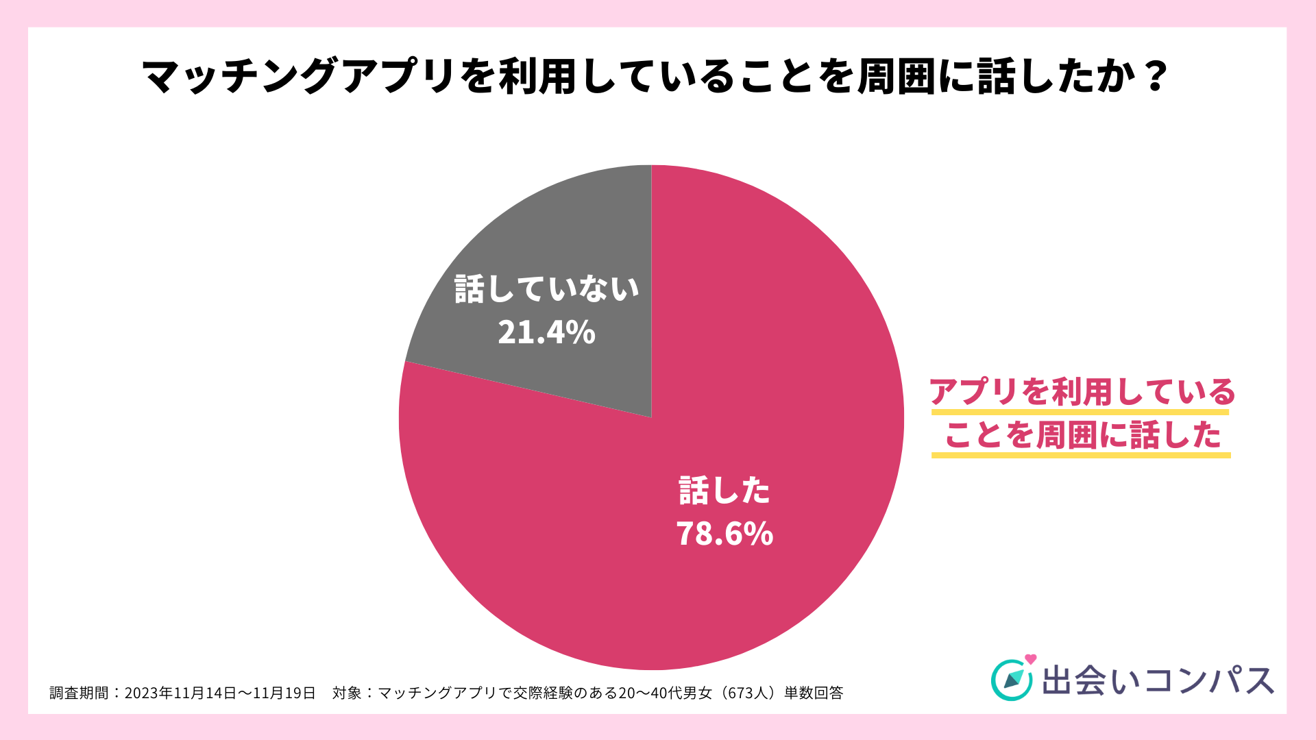 マッチングアプリを利用していることを「誰かに話している」が78.6%