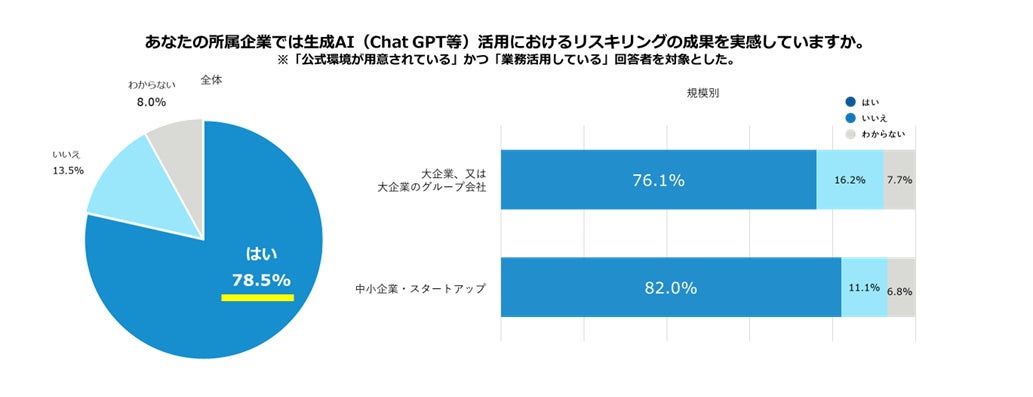 約8割の企業が生成AI(Chat GPT等)活用でリスキリング成果を実感