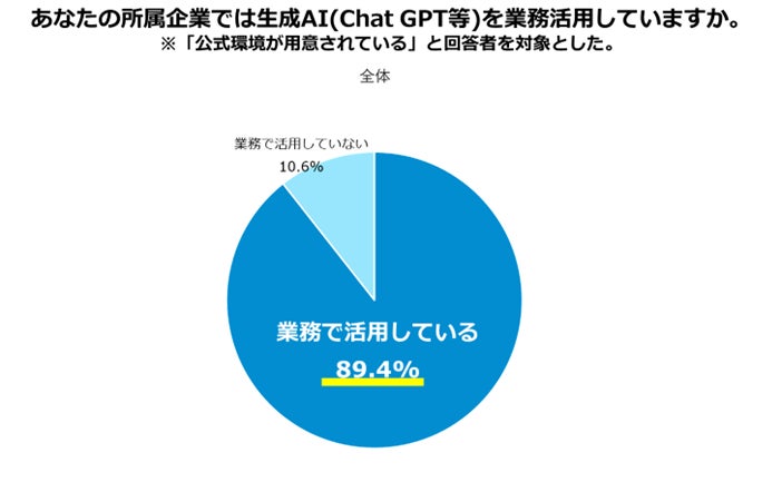 ✓生成AIの業務活用について公式環境が用意されている企業の全体の89.4%が活用