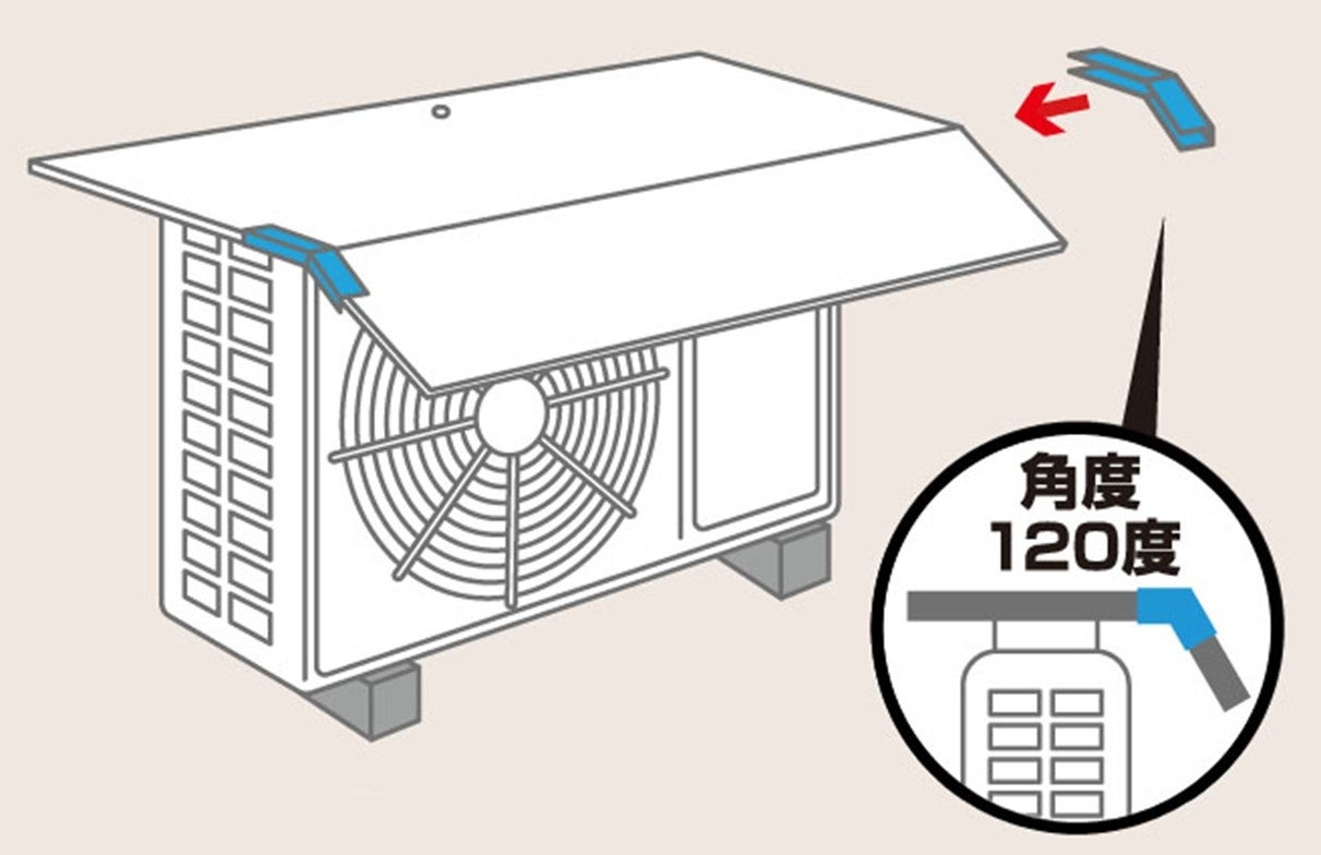 本製品は、ボードの前面がひさしとなり、太陽が傾いても日差しが室外機に当たるのを防ぎます。設置方法は、ボードの裏面のマグネットで室外機に貼り付けるだけなので簡単です。