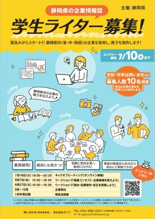【学生ライター募集】静岡県内の企業情報誌を作成する学生を募集します