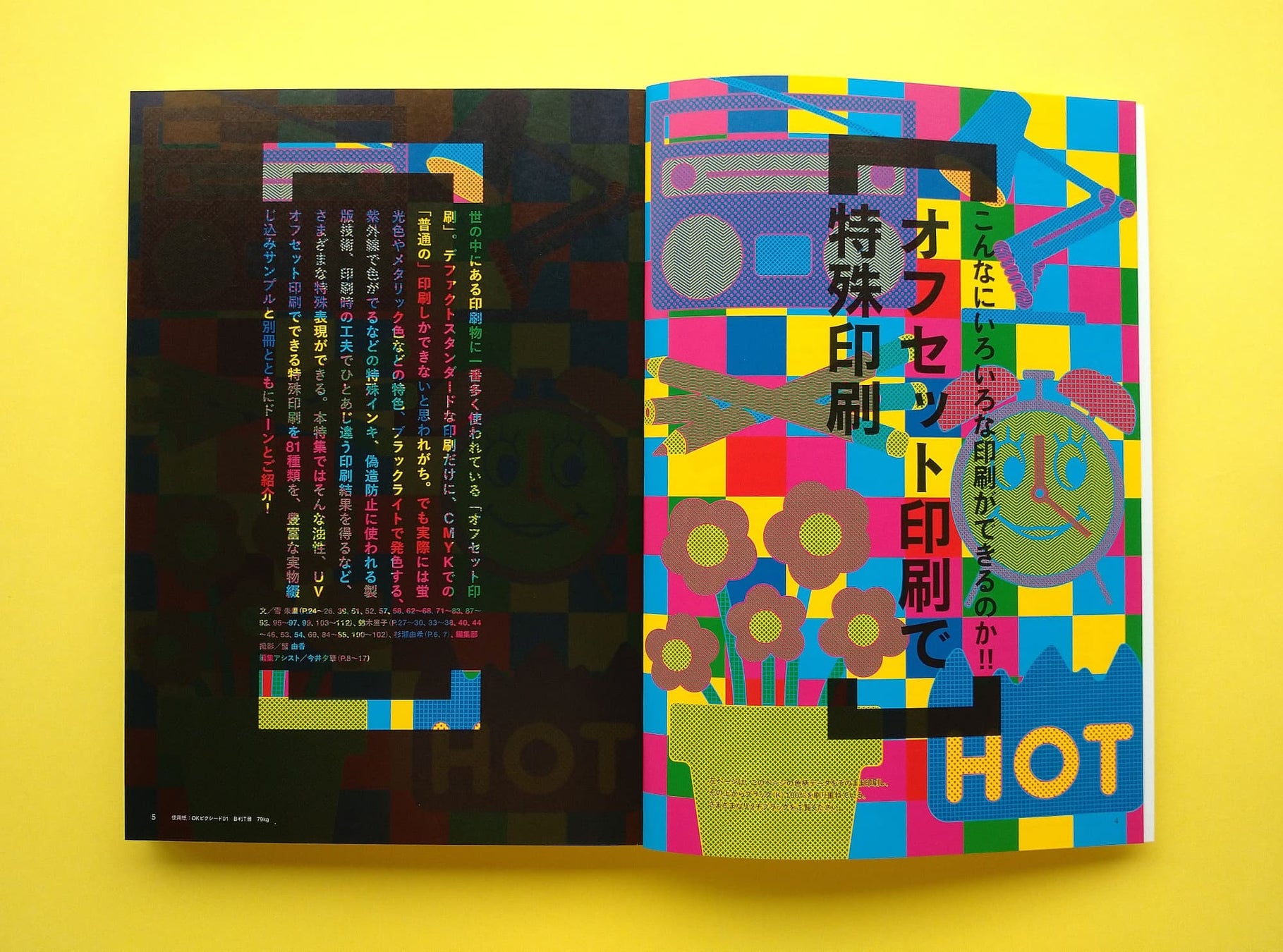 デファクトスタンダードな印刷だけに、CMYK での「普通の」印刷しかできないと思われがち。でも実際にはさまざまな特殊表現ができます。今号ではそんなオフセット印刷を使ってできる特殊印刷を、豊富な実物サンプルとともにドーンとご紹介します。