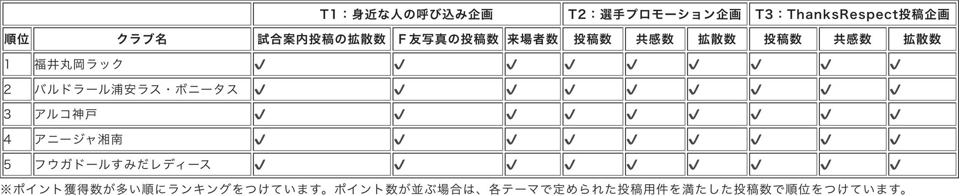 日本女子フットサルリーグ2023-2024 の全11クラブを対象とした年間表彰企画「ABeam AWARD 2023-2024」の最終ランキングを下記の通り、お知らせいたします。