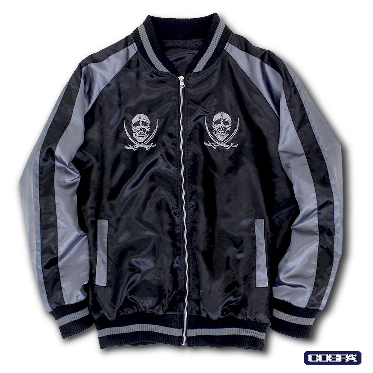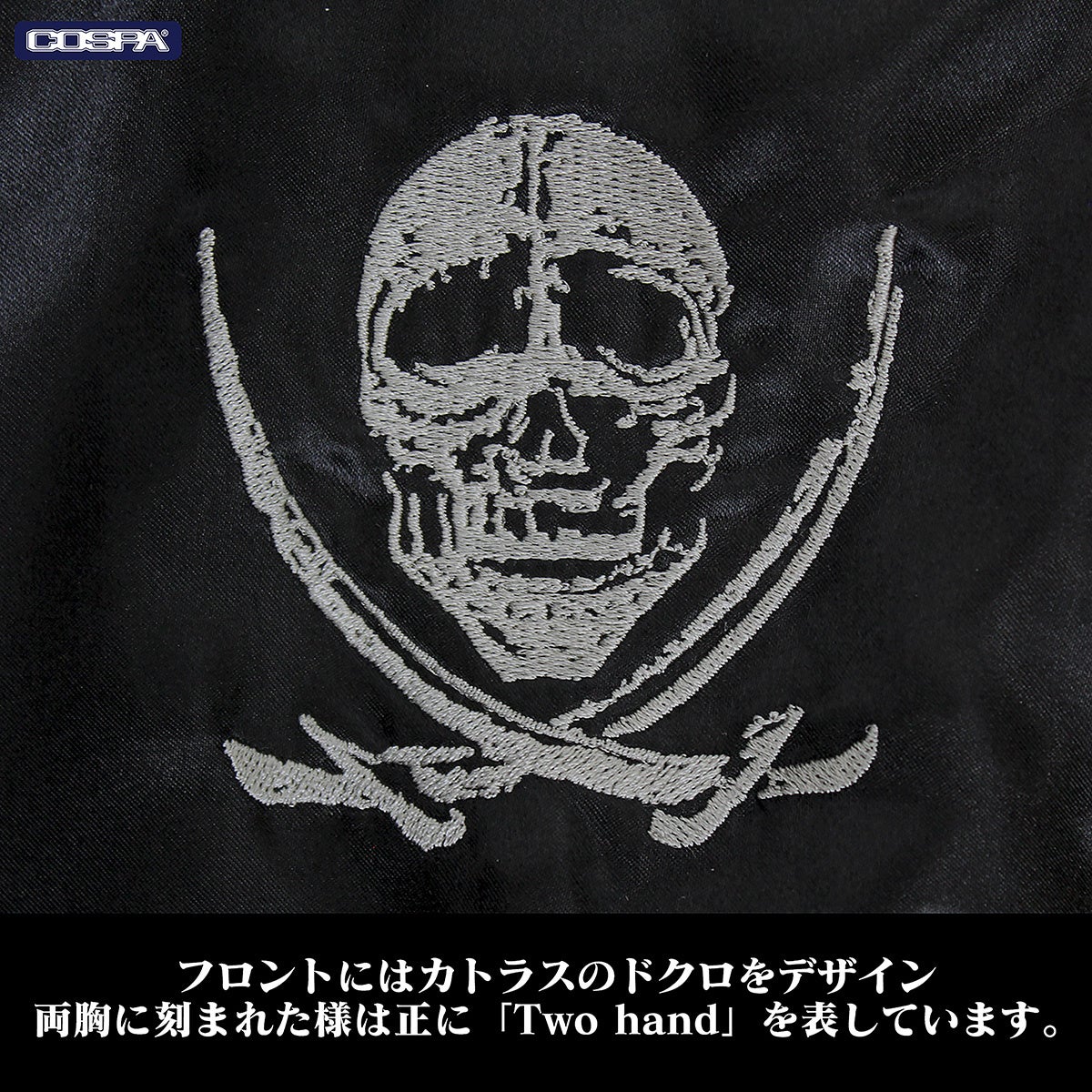 フロントにもぬかりなく、両胸にはソードカトラスのドクロを刺繍でデザイン。