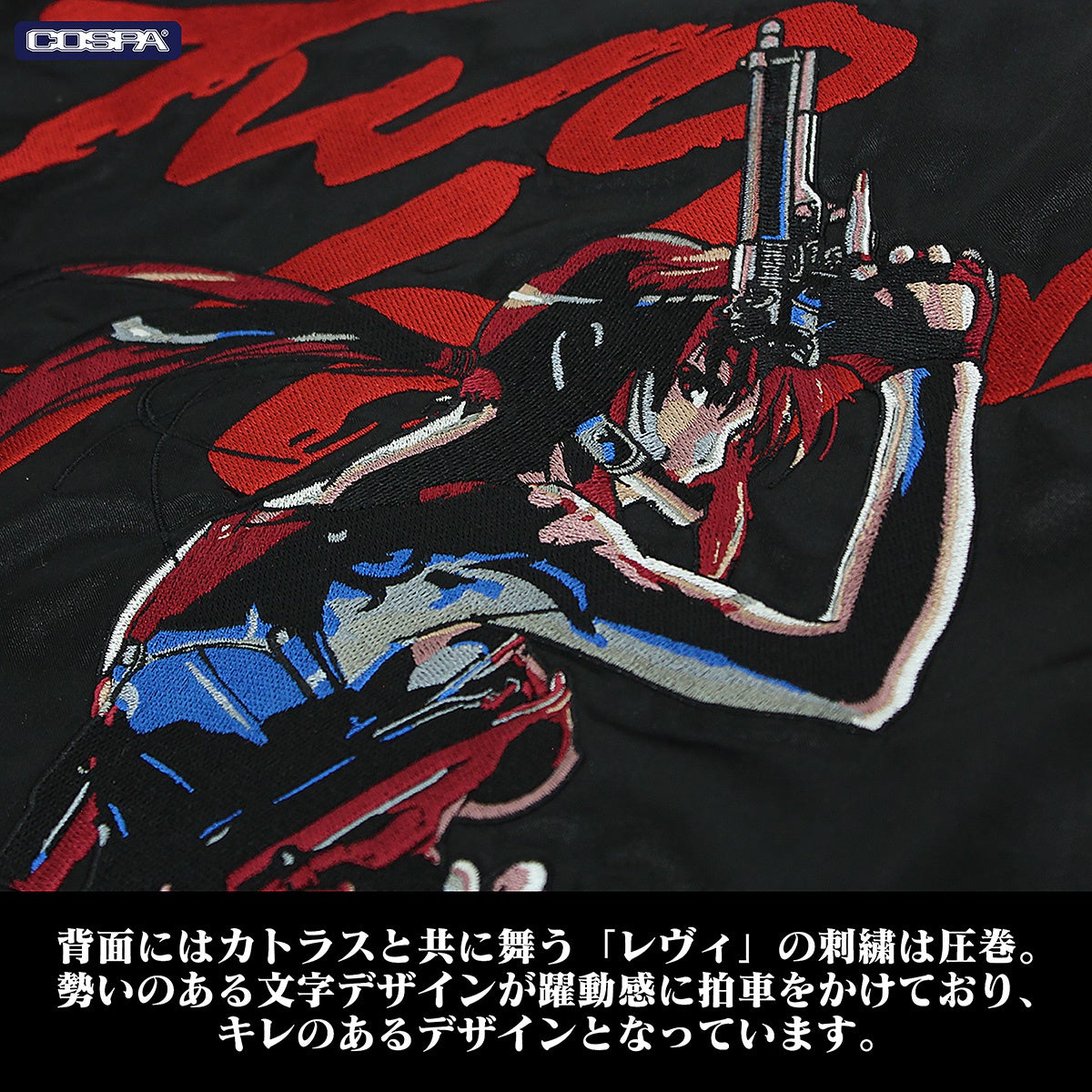 公式キャラクターコスチュームやアパレル、グッズの企画、開発、製造を行う株式会社コスパは『ブラック・ラグーン』より新作「レヴィ 刺繍スカジャン」を予約開始。