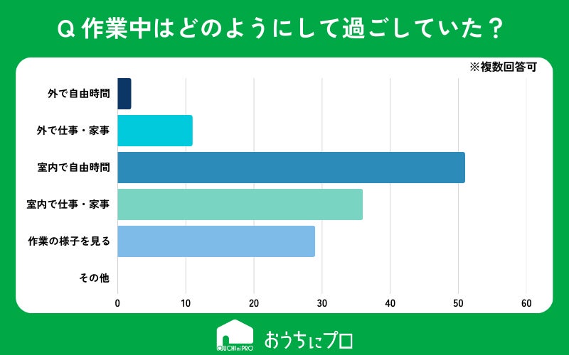 エアコンクリーニングの作業中はどのようにして過ごしていましたか?(複数回答可能)