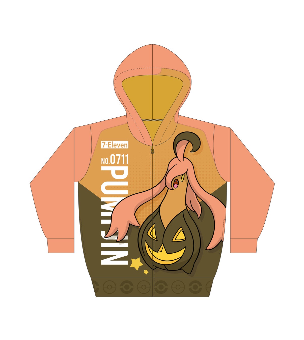 ポケモンずかんNo.0711(セブン‐イレブン)のパンプジンが全面にデザインされたフルグラフィックパーカーです。パンプジンファンにはたまらないグッズです。
