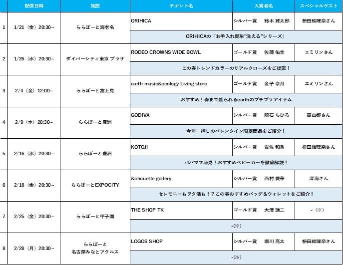 - 配信店舗・スケジュール