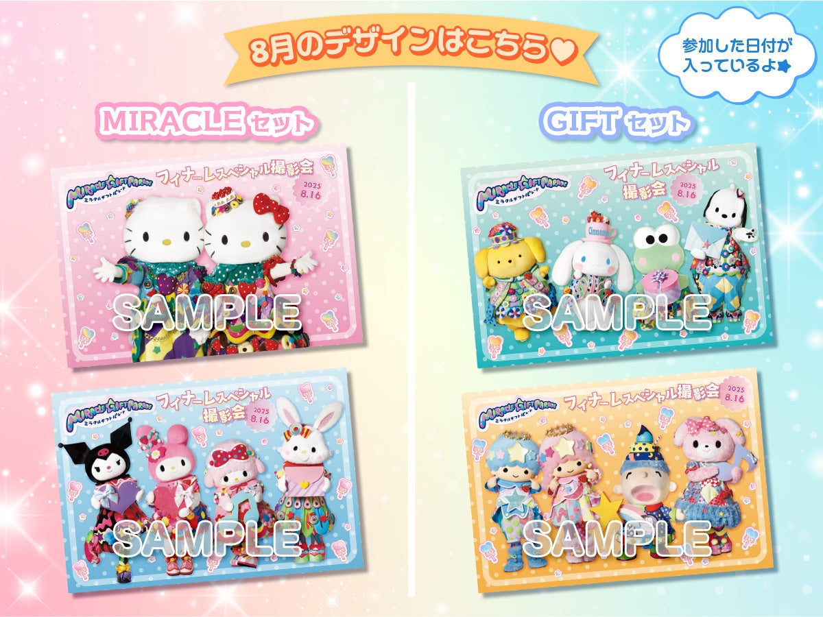 8月の撮影会では、「Miracle Gift Parade」のキャラクターたちがポストカードになったオリジナルノベルティ(2種セット)をプレゼントします。9月以降の撮影会では、ノベルティの内容が変わりますので、発表をお待ちください。