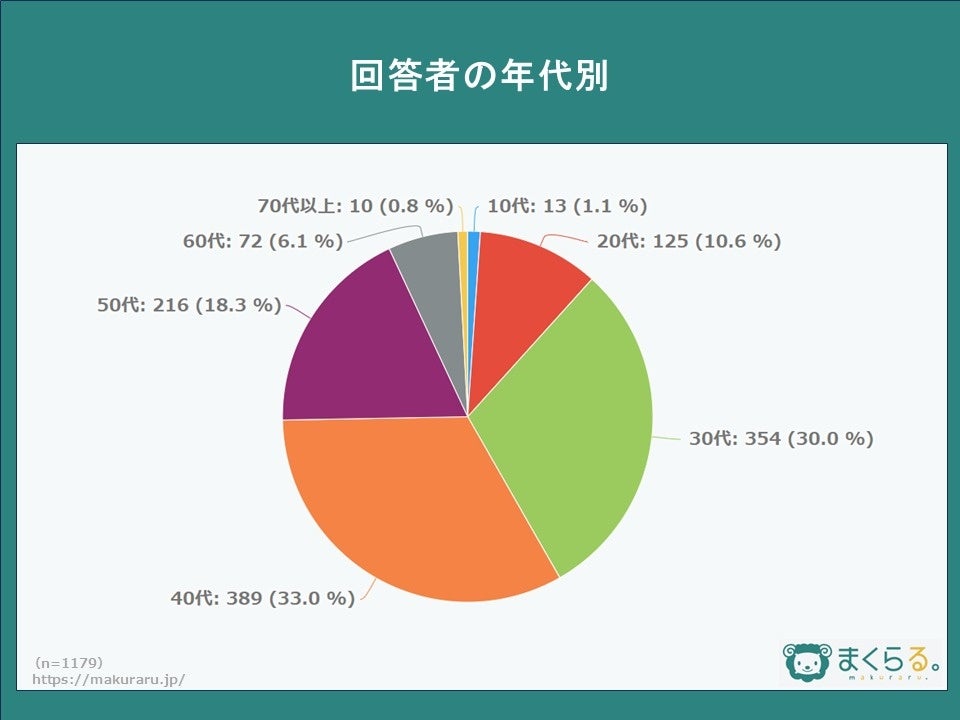まくらるでは、10代~70代以上の男女(計1,179名)を対象に、オーダーメイド枕に特化した統計調査・アンケートを実施。その調査結果を公表しています。