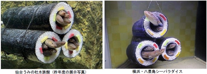 『仙台うみの杜水族館』と『横浜・八景島シーパラダイス』、それぞれが工夫を施した「アナゴの恵方巻水槽」をご覧ください。