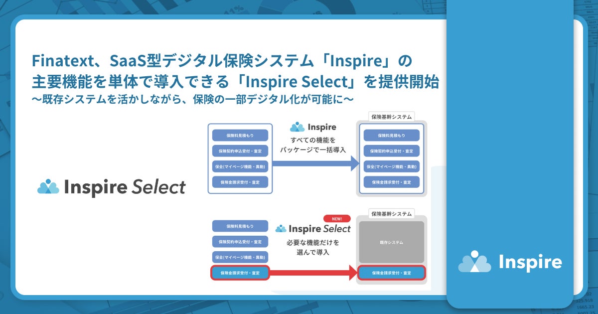Finatext、SaaS型デジタル保険システム「Inspire」の主要機能を単体で導入できる「Inspire Select」を提供開始