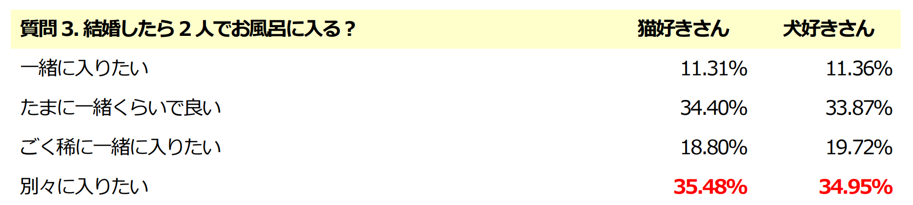 質問3: 結婚したら2人でお風呂に入る?