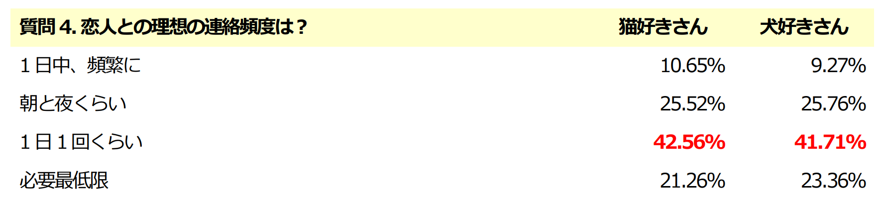 質問4: 恋人との理想の連絡頻度は?