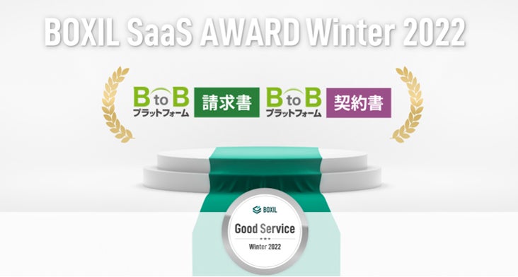 今回の「BOXIL SaaS AWARD Winter 2022」は、2021年10月1日から2022年9月30日までの1年間で新たに投稿された口コミ約10,000件を審査対象としており、その結果、当社の「BtoBプラットフォーム 請求書」が請求書発行システム部門で、また、「BtoBプラットフォーム 契約書」が電子契約システム部門で「Good Service」に選ばれました。