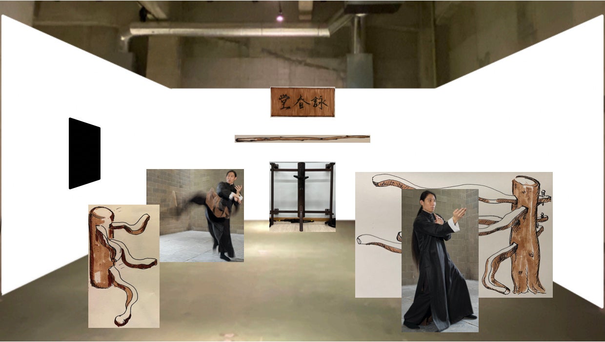 本展示では、中国南部武術「詠春拳」を起点とした学際的パフォーマンス作品「The Wing Chun Project(詠春拳プロジェクト)」の現在地を共有します。約300年以上前に少林寺の僧侶・拳法家であった女性によって創始され、数々の国共内戦と日中戦争により佛山から香港に亡命した祖師「葉問」と弟子によって世界的に普及されました。2019年以降、私は香港・中国・日本にて鍛錬やリサーチ、交流を重ねています。詠春拳創始者の思想を再解釈し、その発展と密接に関係する東アジアにおける戦争と植民地支配の歴史、そして現代社会における戦いや自己防衛を学ぶことの意味を模索してきました。