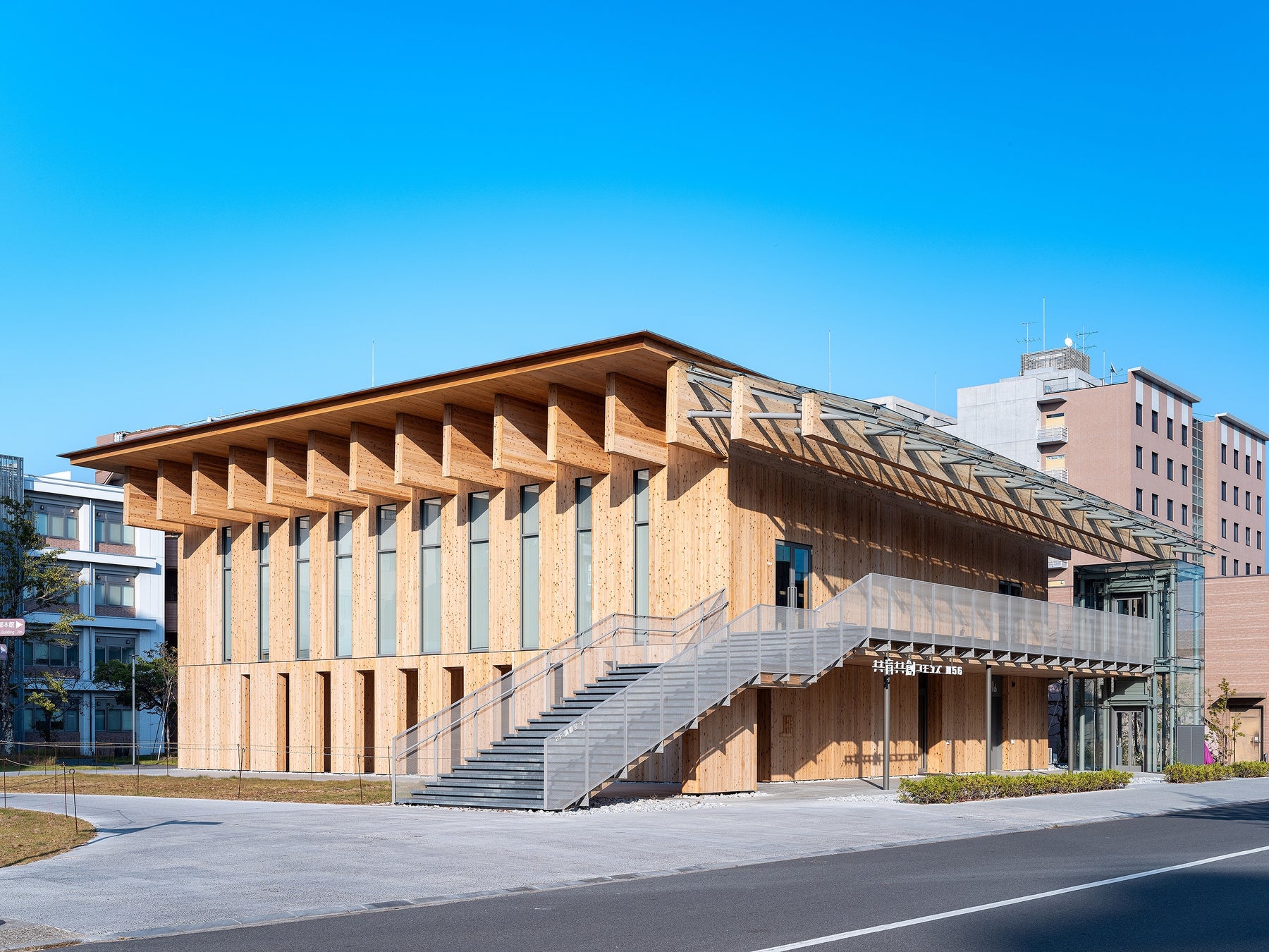 建築の重要な役割の一つが人々の生活や財産を外部から保護することである。そのために建築の開口は気象、犯罪、事故など外部要因に対して隔離や閉鎖を重視してブラックボックス化する傾向が強く、中には何があって、どんな人が居て、何をしているのか分かりづらい排他的な箱物となる。その結果外部には壁面が露出して、近隣社会との交流や親和性が失われるだけでなく、時として人々に威圧感さえ与える。こうした現象を如実に物語るのが最近目立ち始めた大型物流倉庫である。周辺の街のスケールを逸脱した巨大構造物が、人々が慣れ親しんだ地域の風景を一瞬にして破壊してしまう。こうした大型施設問題に対してその解を導いたのが岡山大学複合施設である。同物件は木造CLTパネル工法、大スパンの大梁、耐力壁パネル等々大型建築の迫力や力強さを際立たせながら、同時に優しさや暖かさをも感じさせるデザインに開口部が寄与している。外壁パネルをずらした市松模様の開口部からは、金属質な硬さや冷たさを消す細い見附のサッシをつかい、木質系の内部空間が見え隠れしている。人々にとって窓から漏れる光や人影から 建築内の気配を感じとれるなど、この施設が交流性や親和性を重視したことが分かる。大型施設でありながら利用者に対しては暖かく迎い入れ、近隣社会に対して良好な関係を築こうとする開口部のデザインは、非常に高く評価できる。施設規模や技術力経済力が高い建築は往々にして近寄りがたい存在となることが多い。こうした問題の解決に貢献できるフロントサッシは、店舗用建材の可能性を示唆した作品として非常に意義深く、金賞にふさわしい事例と判断して贈賞を決めた。