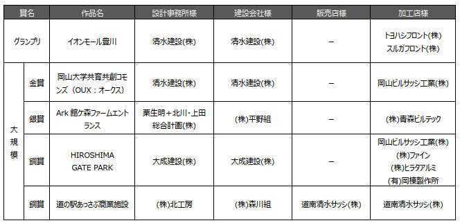 審査は、加工・施工技術、デザイン性、建物全体との調和等を審査基準としており、本コンテストでは、グランプリをはじめ、「小規模部門」「大規模部門」各部門の金賞(2点)、銀賞(2点)、銅賞(3点)ならびに新商品賞(1点)、特別賞(4点)を選出しました。