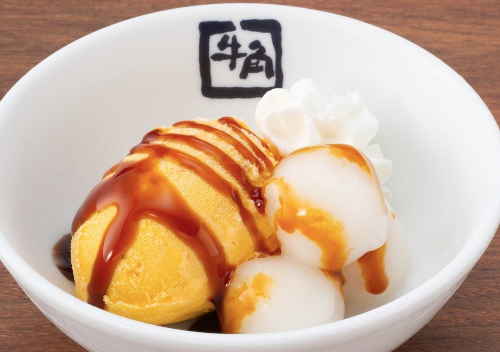 牛角コース以上で「月見とろカルビ」、1人1つ選べるスイーツで「しらたま安納芋アイス」が注文できます。