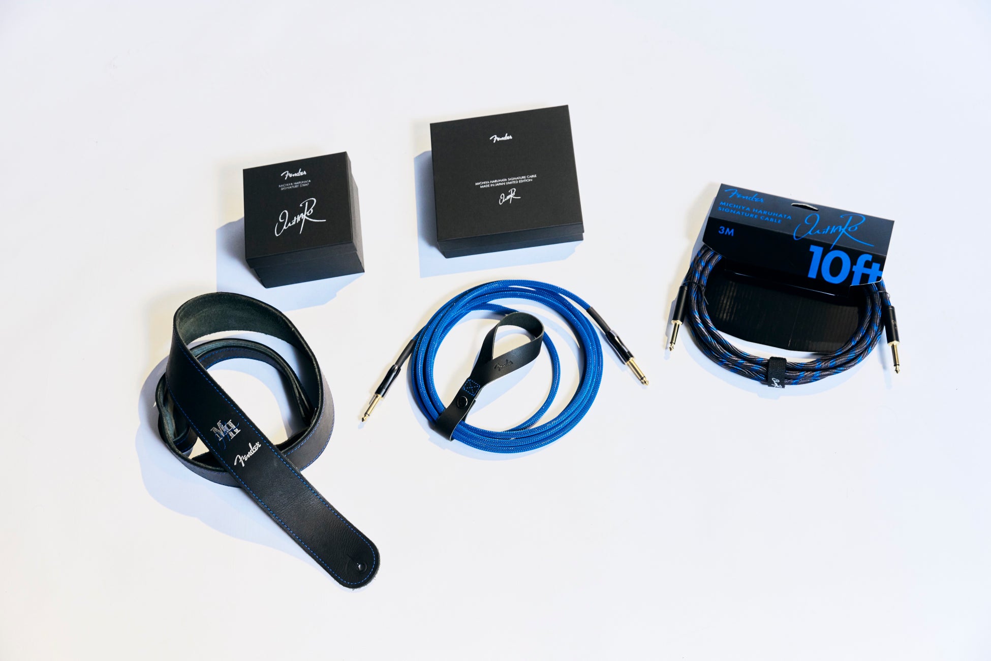 自身のライブで愛用するソフトなレザー素材とオリジナルロゴを配したストラップ、そして理想のトーンを追求し、幾度ものテストを経て生み出された初のケーブルが登場!