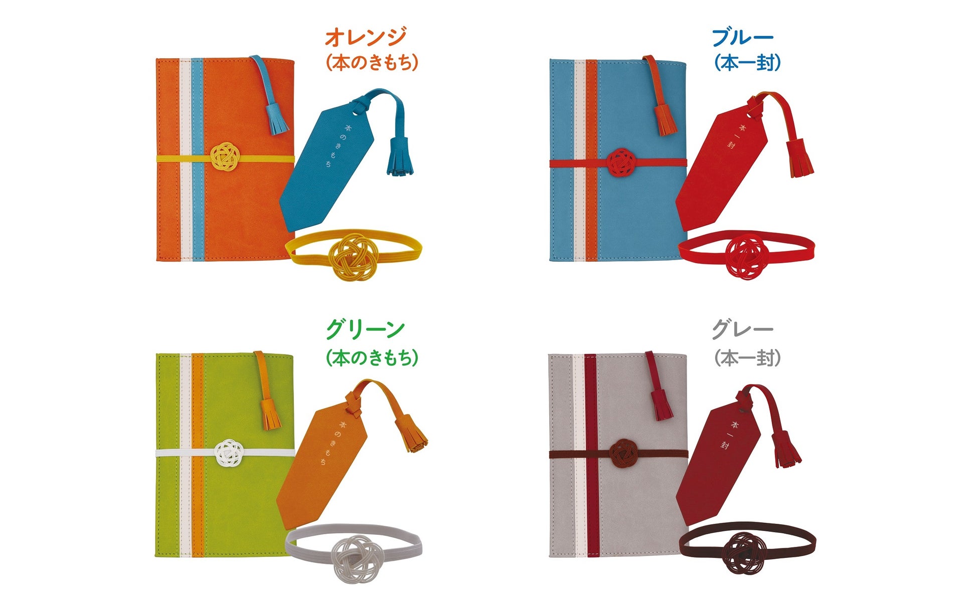文庫本サイズのブックカバーにしおり・ブックバンドがセットになっており、すべて本に装着すると「ご祝儀袋」のような見た目になります。お祝い事にぴったりの華やかな配色でも日常使いしやすいよう、シンプルでモダンなデザインを意識しました。4色それぞれに違う色のしおりとブックバンドを付属し、相手の好きな色や贈る本の内容に合わせるなど、ギフトとして選ぶ時間も楽しいアイテムです。