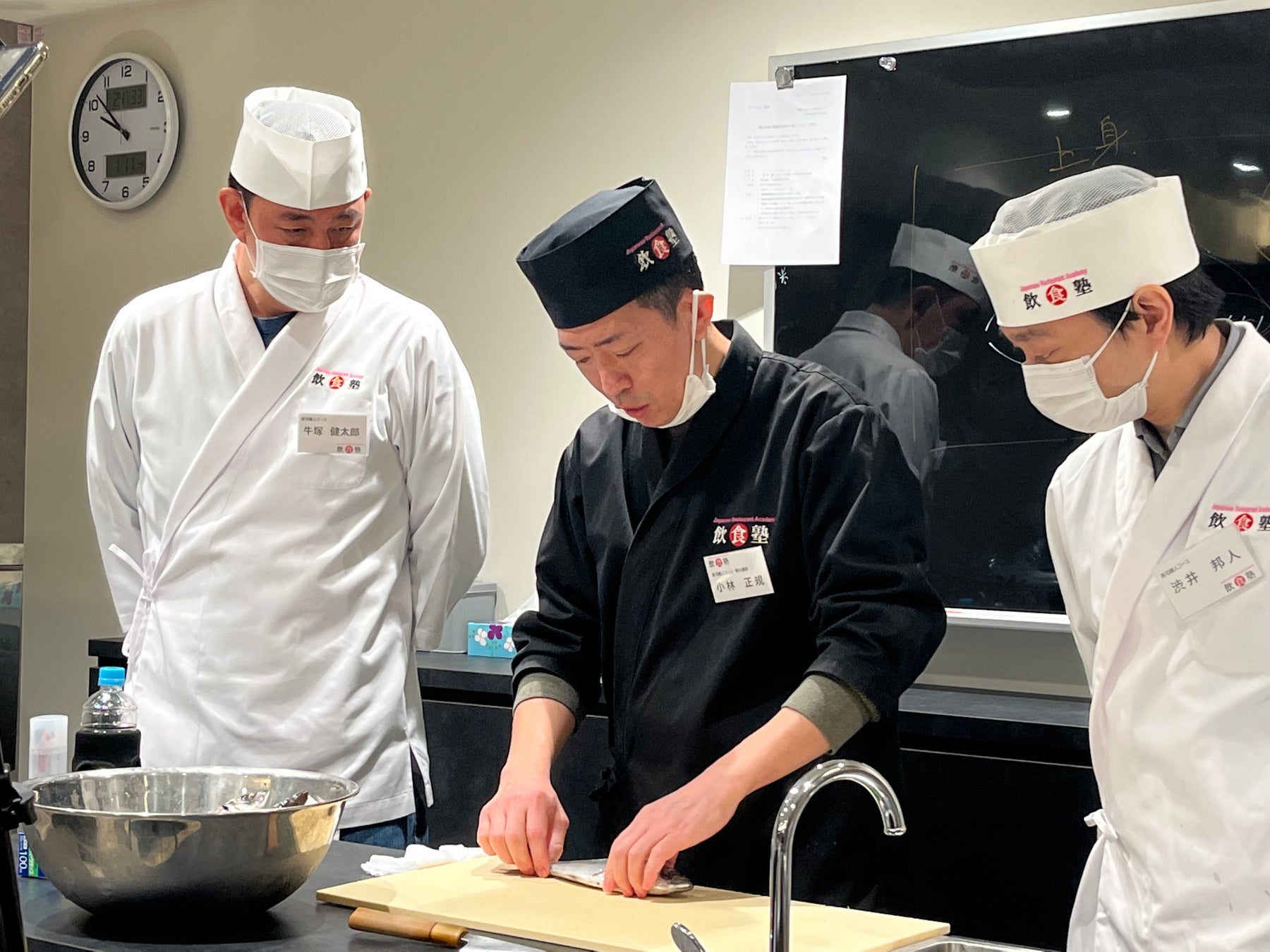 飲食塾は、超短期間で必要な技術・ノウハウを身に付けられる料理人育成スクールです。従来の厳しい上下関係や長期間の修行を見直し、料理を作る上での細かな技術・お客様に対面した際の所作など、一流の料理人が持つスキルを、コースによってはわずか10日間~という驚きの短期間で学べます。効率的に学べる環境を提供することで、日本の「食」文化を担う料理人の輩出・活躍を支えます。