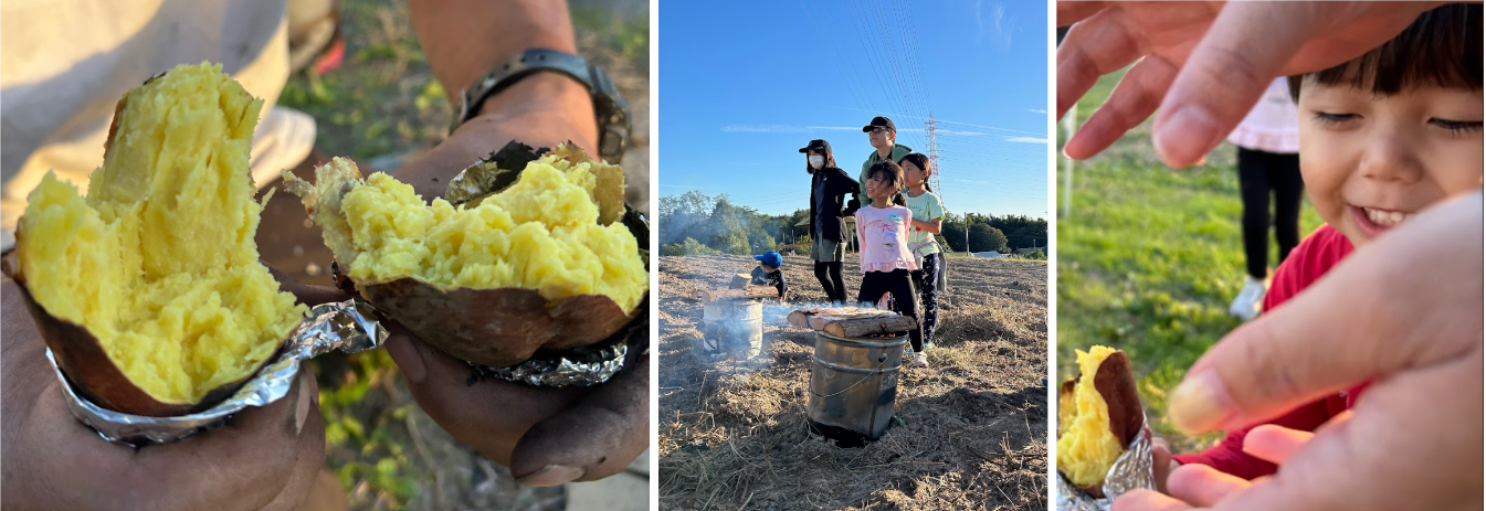 採ったさつまいもは一斗缶で焼き、青空の下みんなでおいしく食べ、残ったさつまいもはお家に持って帰っていただきました。今後も地域の皆さまに喜んでいただけるよう、このような食育につながるイベント開催を検討しています。