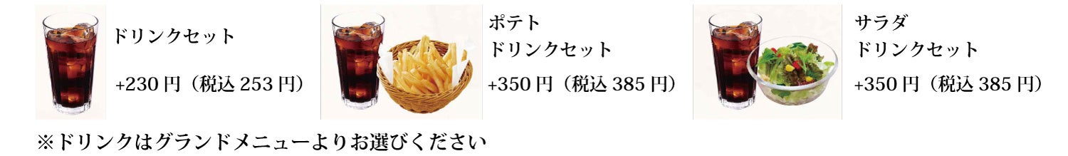 フェアメニューご注文でドリンク1杯サービスいたします。 (アルコール、ホットコーヒーは対象外です)