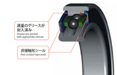 高速回転するモーターの低トルク・低昇温・長寿命化に貢献するソリューションとして、非接触シールを採用したシール付きアンギュラ玉軸受を出展します。