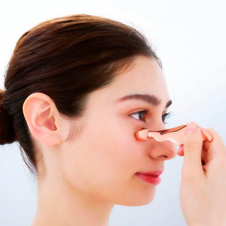 はじめはひんやり。使用するうちに熱伝導でじんわりあたたかくなり、リラックス効果も。冷水で冷やして引き締めも可能!小鼻や毛穴など気になる部分にあてて肌を引き締め、キュッと整えます。