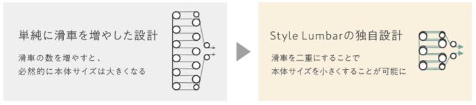 背面に配置した滑車が、締めつけにかかる力を強力にサポート。