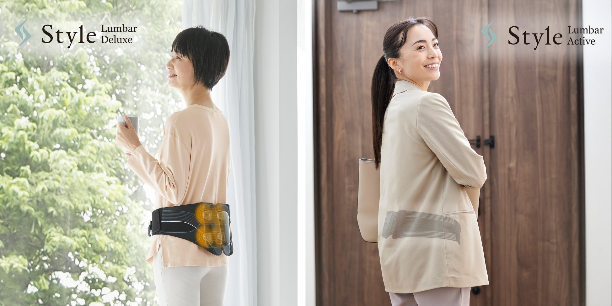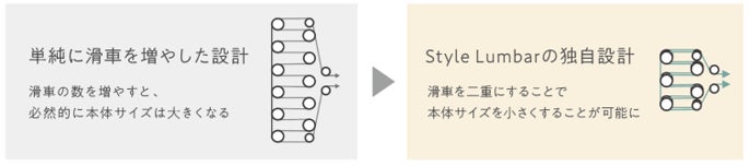 この度、その「Style Lumbar」の機構をベースに、より手軽に日常的に使用いただけるタイプとして「Style Lumbar Active」、指圧パーツ「こしあつパッド」による指圧代用効果と滑車効果の2つのサポートを選べる「Style Lumbar Deluxe」を新たにラインナップに加えることといたしました。これにより、より幅広いニーズに対応できるようラインナップの拡充、展開を進めてまいります。
