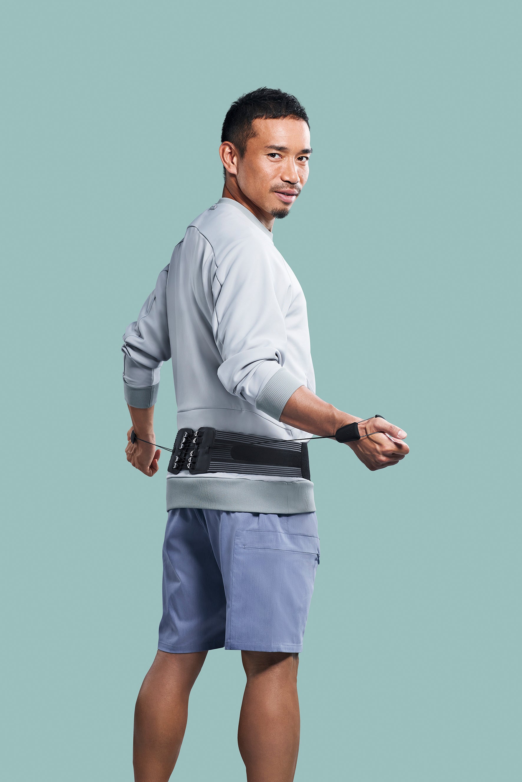 インナーにも着用できるスッキリとしたシルエットでありながら、滑車の原理による確かな固定力を実現。