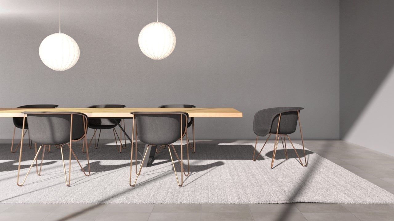 ボディタイプはシェルチェア(4本脚、キャスター回転脚)とハイスツールの計3タイプ、フェルト背座シェルカラーにはライトグレーとダークグレーの2色をラインアップしています。脚カラーはサテンブラックとライトグレーの塗装仕上げに加え、インテリアにさらに上質な印象をもたらす特別色カッパーと、アルミポリッシュ仕上げもお選びいただけます。