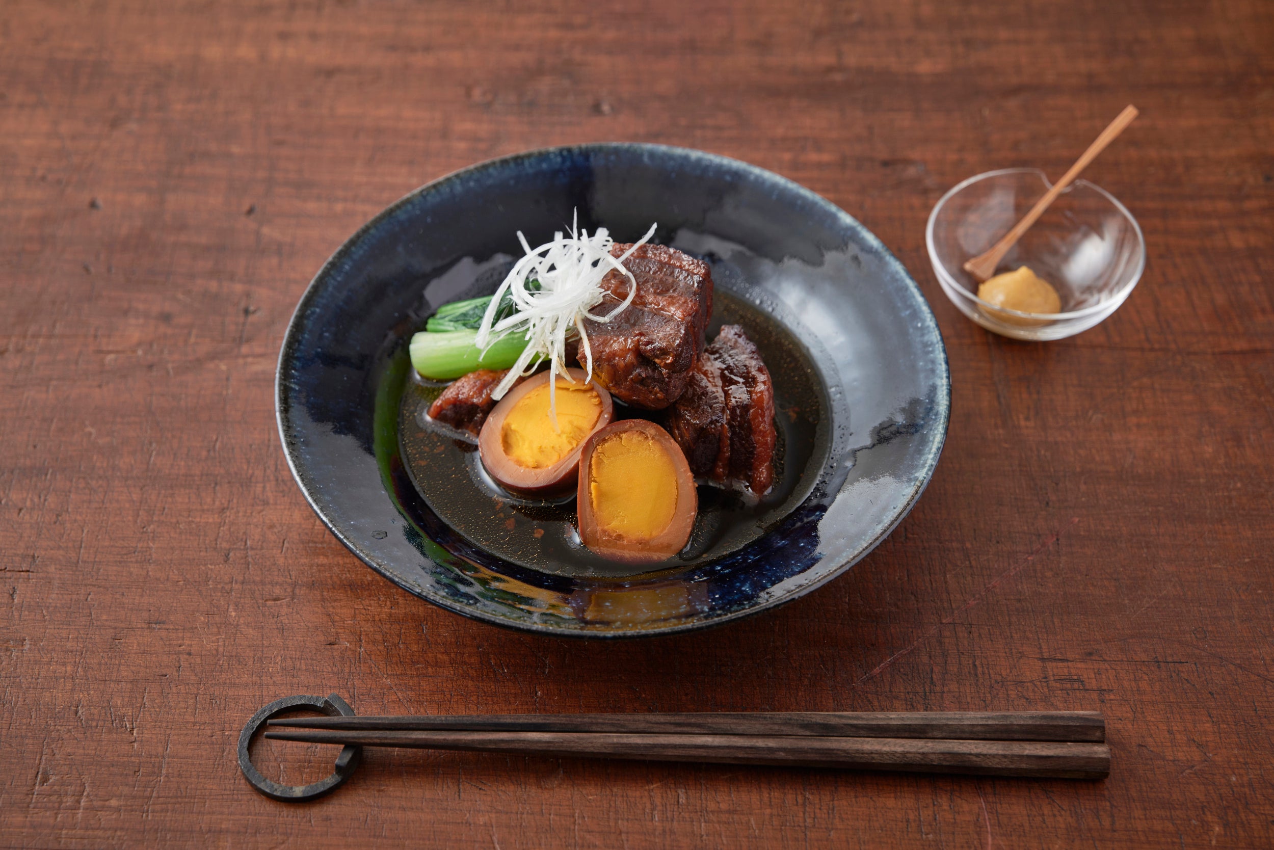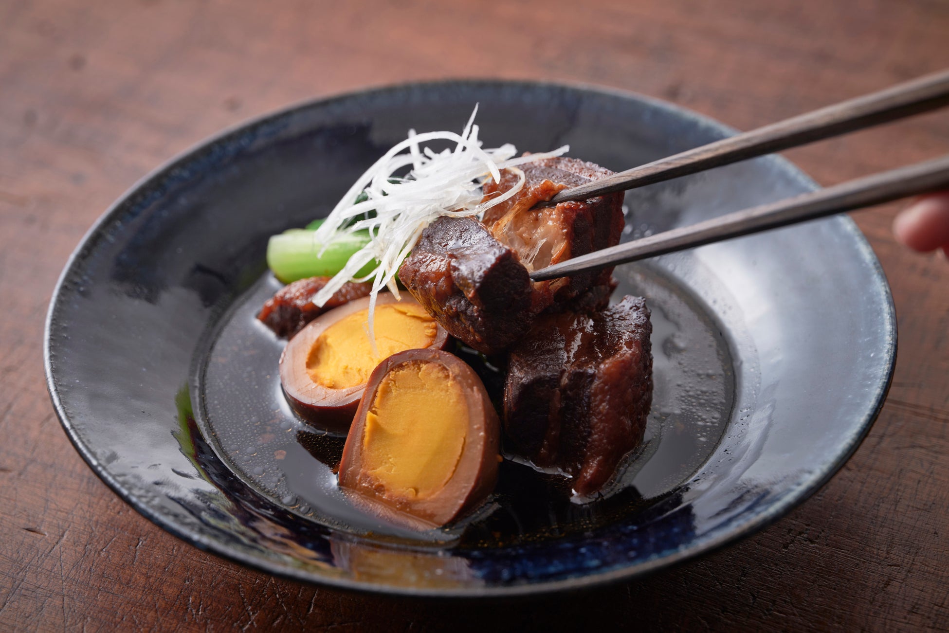 こっくりとした味わいながら、後味がすっきりとした『ヤマロク醤油』の再仕込み醤油「鶴醤(つるびしお)」で、コクと旨みのある「角煮」に仕あげました。