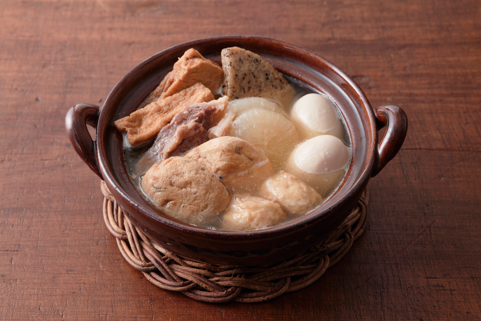 大阪の出汁専門店『こんぶ土居』の出汁で究極のおでんをつくりたいと、オリジナルレシピで仕あげました。温めるだけで、味がしっかりしみた本格的な「おでん」が出来あがります。
