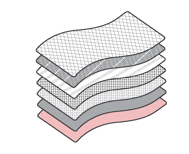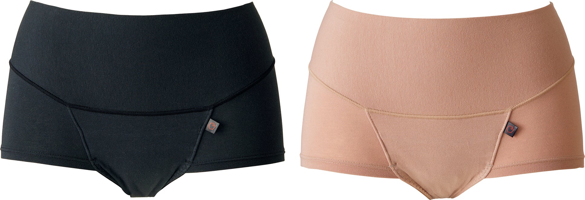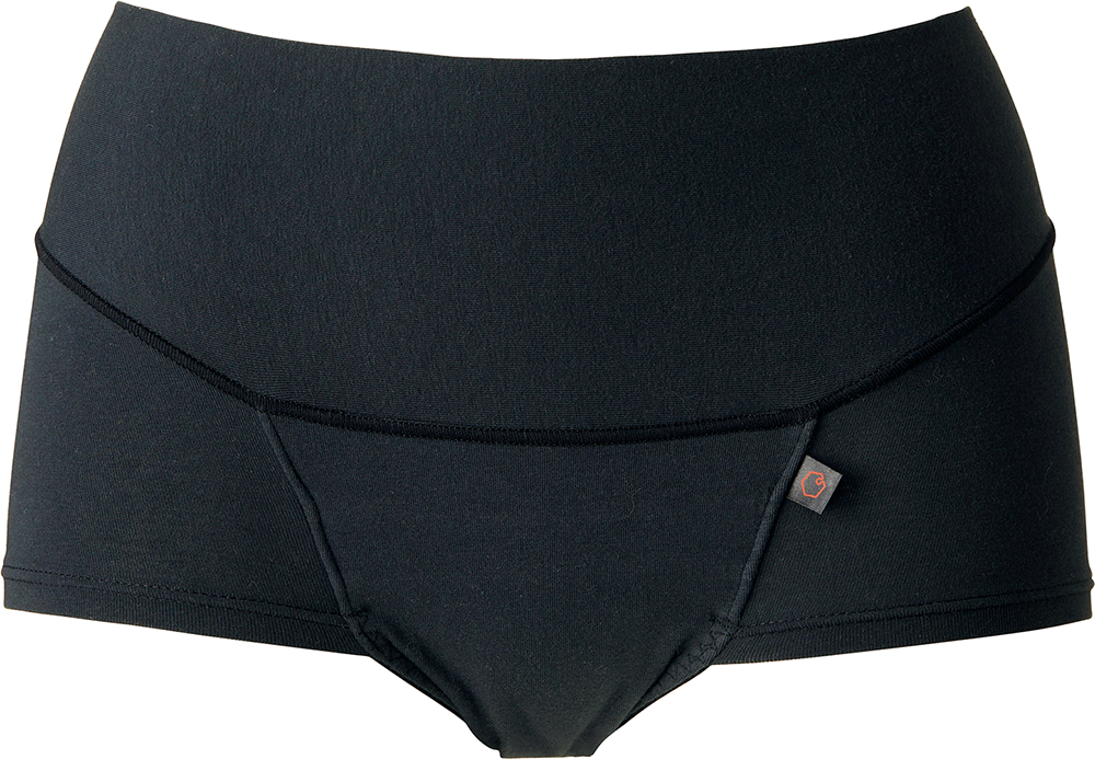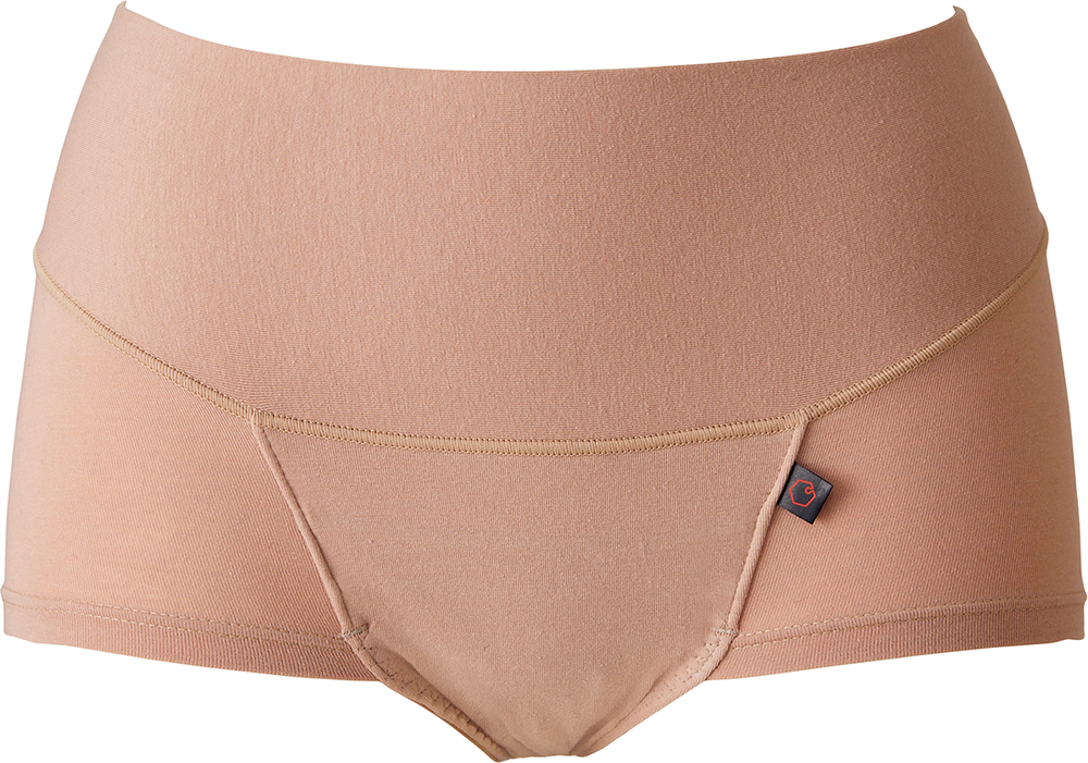 ③ウエスト・ヒップをすっぽり包み込み、ズレにくいマキシ丈。お腹周りは生地を2重に折り返し、締め付けずにやさしくフィット。後ろまで防水ガードして長時間、横になっても安心。