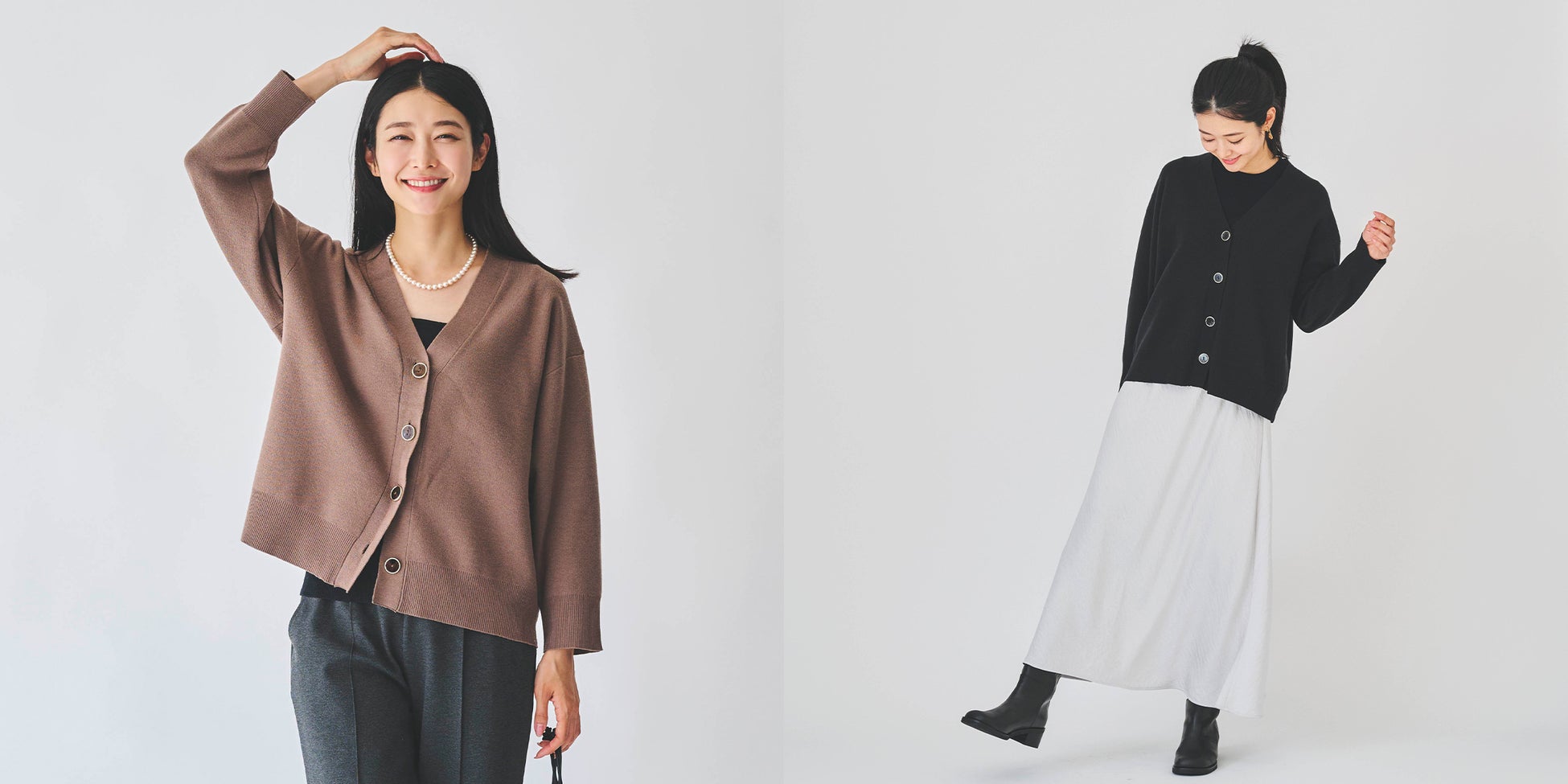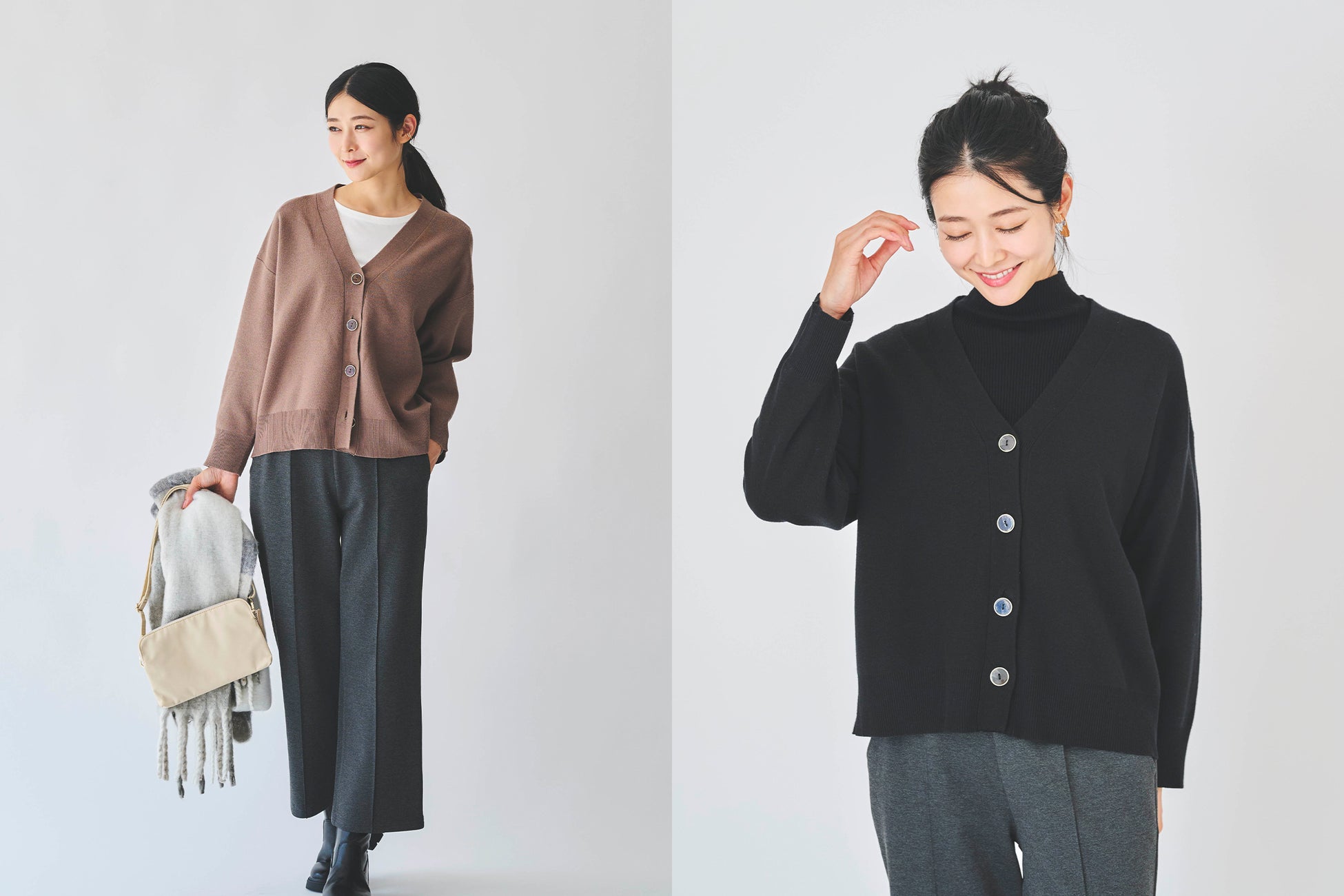 この秋発売する「タフニットVネックカーディガン」の最大の魅力は、お洗濯&タンブル乾燥が可能で毛玉になりにくく、デイリーに長く着られるところです。