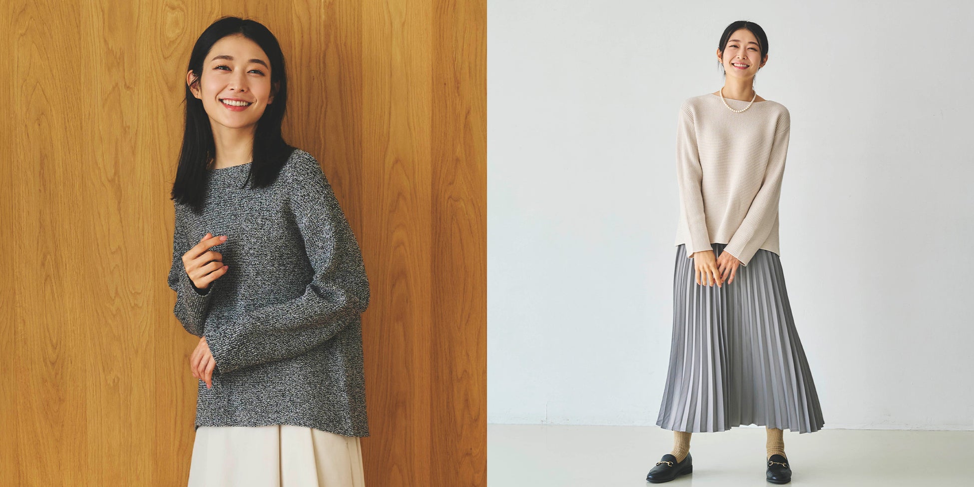 生地感は、モチッとしていて柔らかい着心地です。ニット特有のチクチクした感じがなく、寒暖差の激しい秋口から1枚でサラッと羽織れるのも嬉しいポイントです。