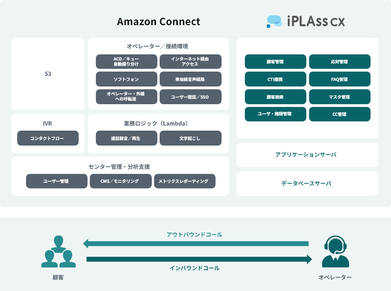 音声基盤にAWSの「Amazon Connect」を採用し、「iPLAss CX Edition」上の連携テンプレートを活用して接続することで、システムの構築にかかる期間と工数を短縮します。また、担当者の権限に応じたアクセス制御機能を備えており、企業の厳格なセキュリティ要件を満たす環境を提供することが可能です。