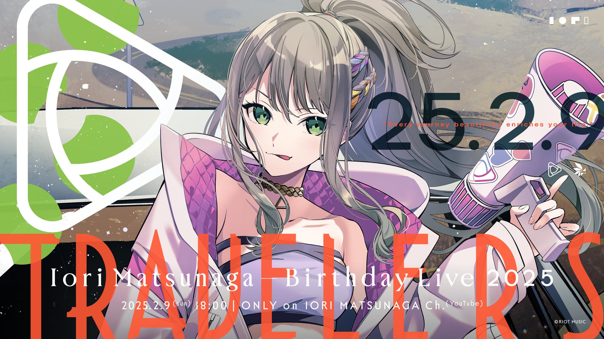 株式会社RIOT MUSIC(本社:東京都港区、代表取締役:舩橋 純、株式会社Brave group100%子会社)は、VSingerレーベル「Blitz Wing」に所属する「松永依織(まつなが いおり)」の誕生日を記念したバースデーオンラインライブ『TRAVELERS』を2025年2月9日(日)18時より開催することをお知らせいたします。