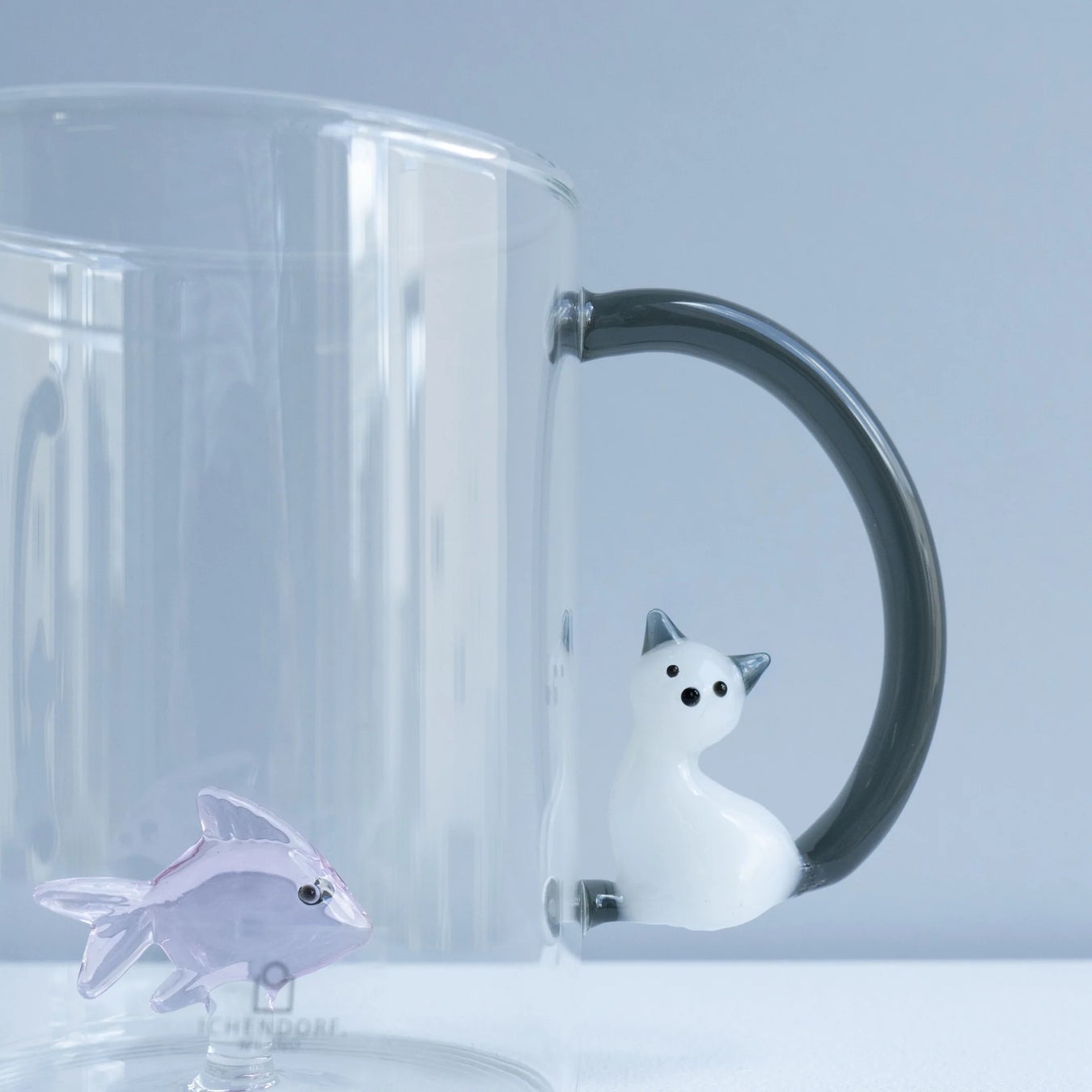 エレガントにガラスの中で遊ぶネコたちをアレッサンドラがデザインしました。ドイツ発祥のボロシリケイトガラスは高い耐熱性と硬度を誇り、安定性のよさから精密機器にも使用されます。また透明度が高く、その美しさが変わりません。