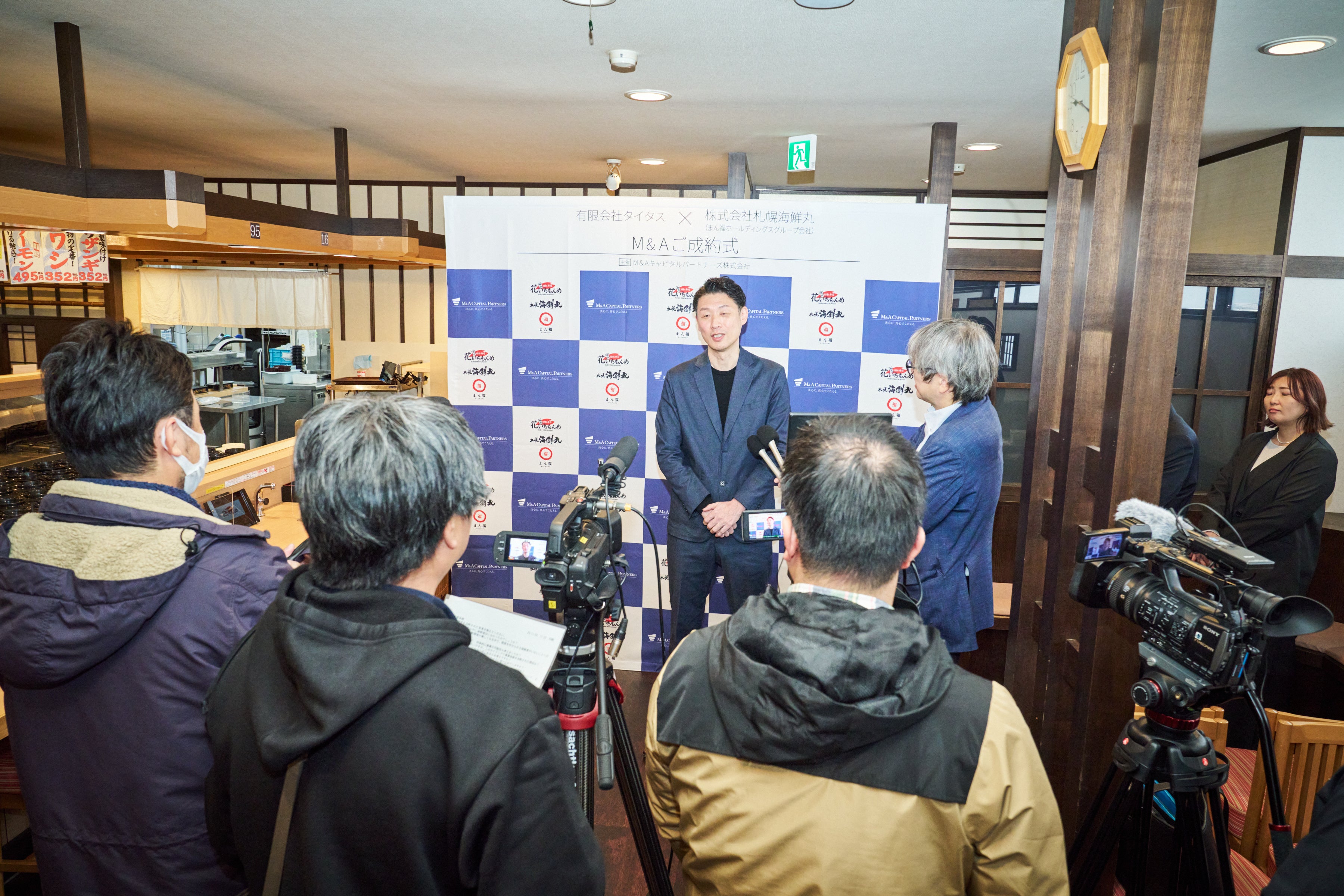 M&Aキャピタルパートナーズ株式会社(東京都中央区・代表取締役社長 中村悟)は、回転すし店「花いちもんめ」を運営する稚内市の有限会社タイタスと、札幌市に本社を構え、持ち帰り寿司店を主に事業展開を行う株式会社札幌海鮮丸(日本の食に特化した事業承継プラットフォームを展開するまん福ホールディングスのグループ会社)のM&Aを仲介いたしました。2025年11月4日に、花いちもんめ稚内本店にて、M&A成約式を開催いたしました。