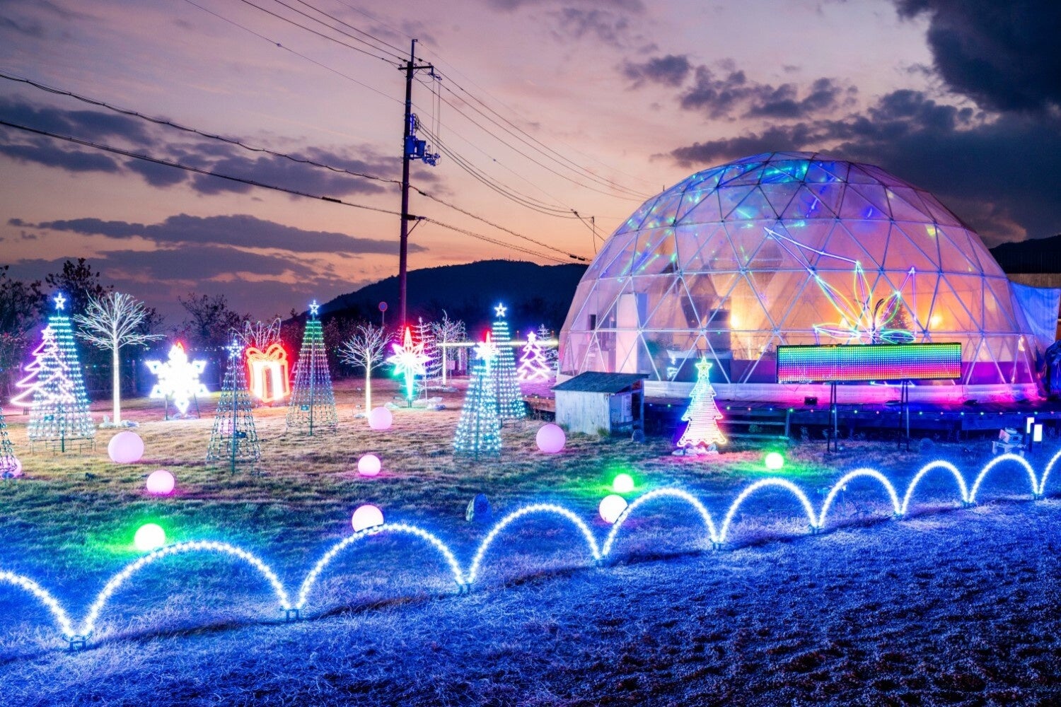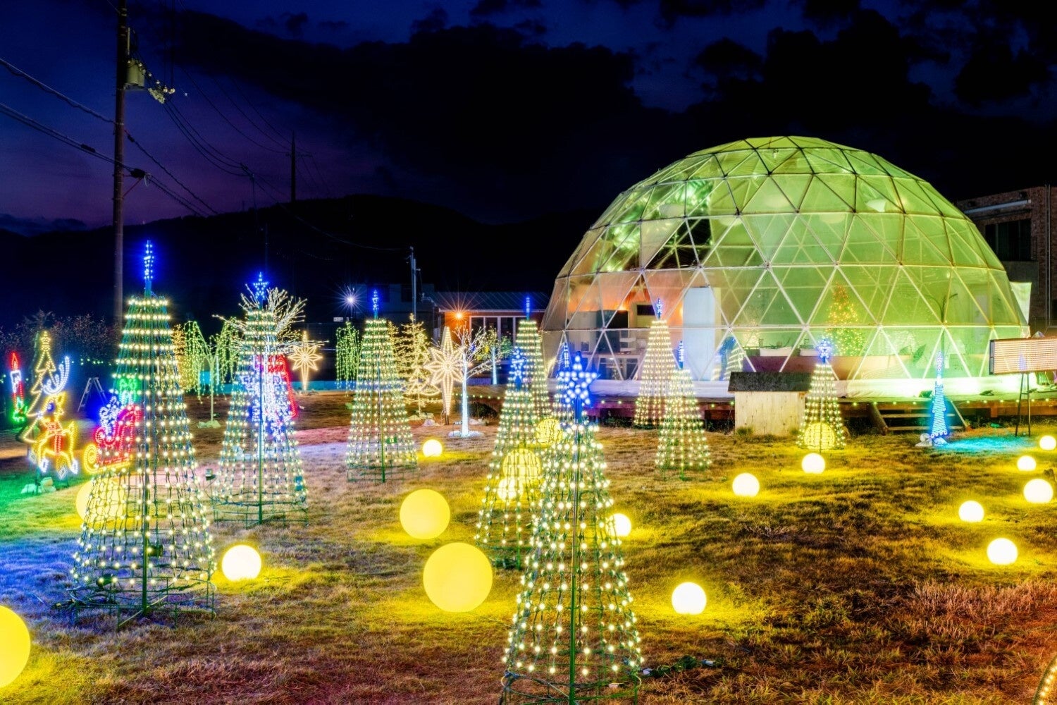 【琵琶湖ミュージック・イルミネーション開催中】琵琶湖畔の景色と自然を楽しむグランピングリゾート「グランドーム滋賀高島」~期間限定キャンペーン同時開催!~