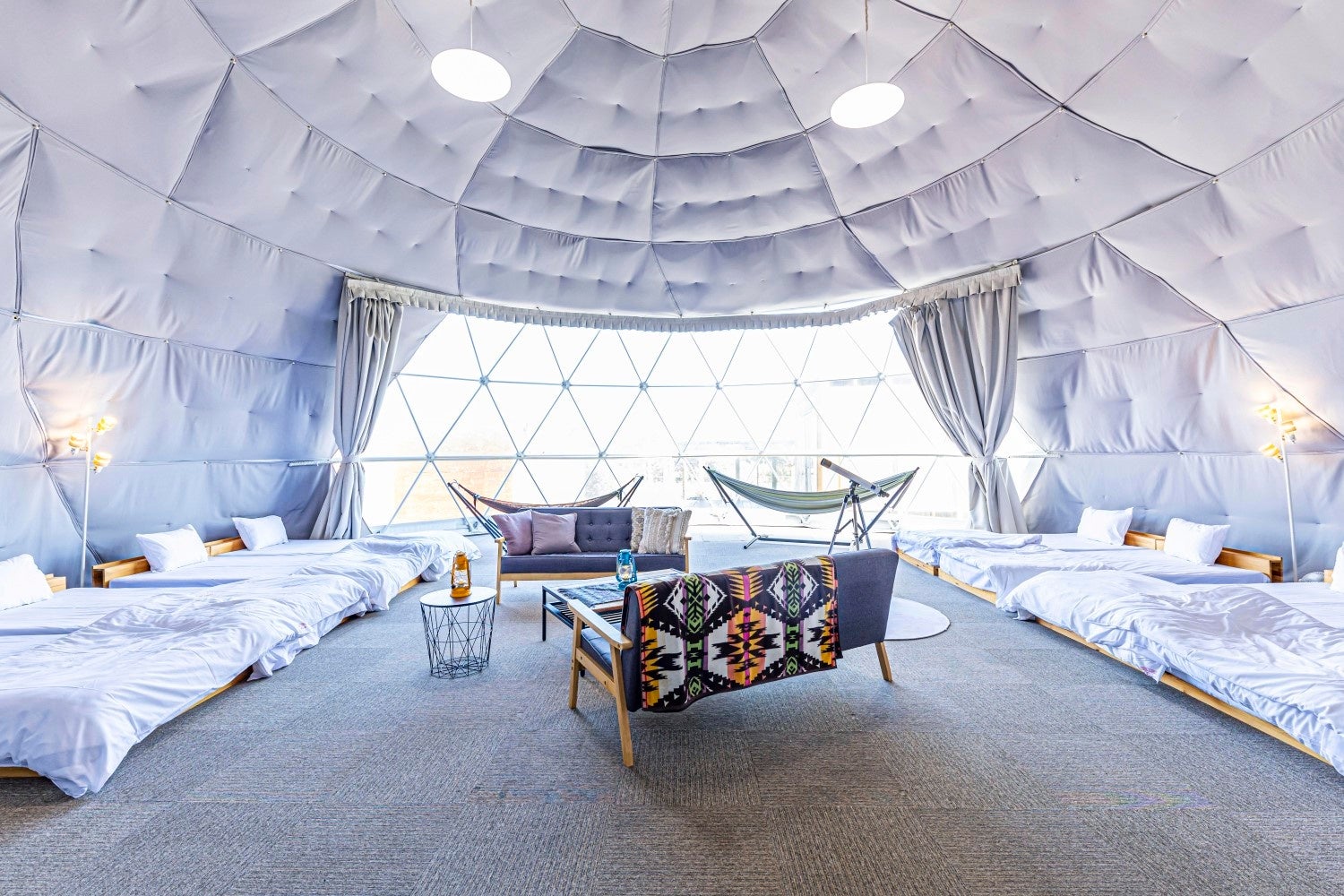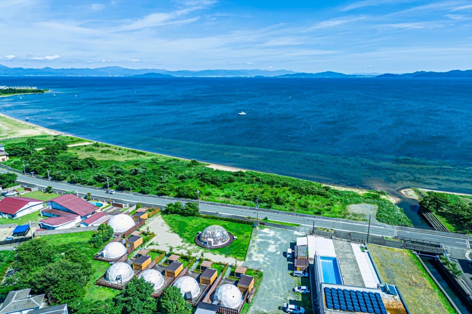 全6棟のドームテント型グランピングリゾート 「グランドーム滋賀高島」。