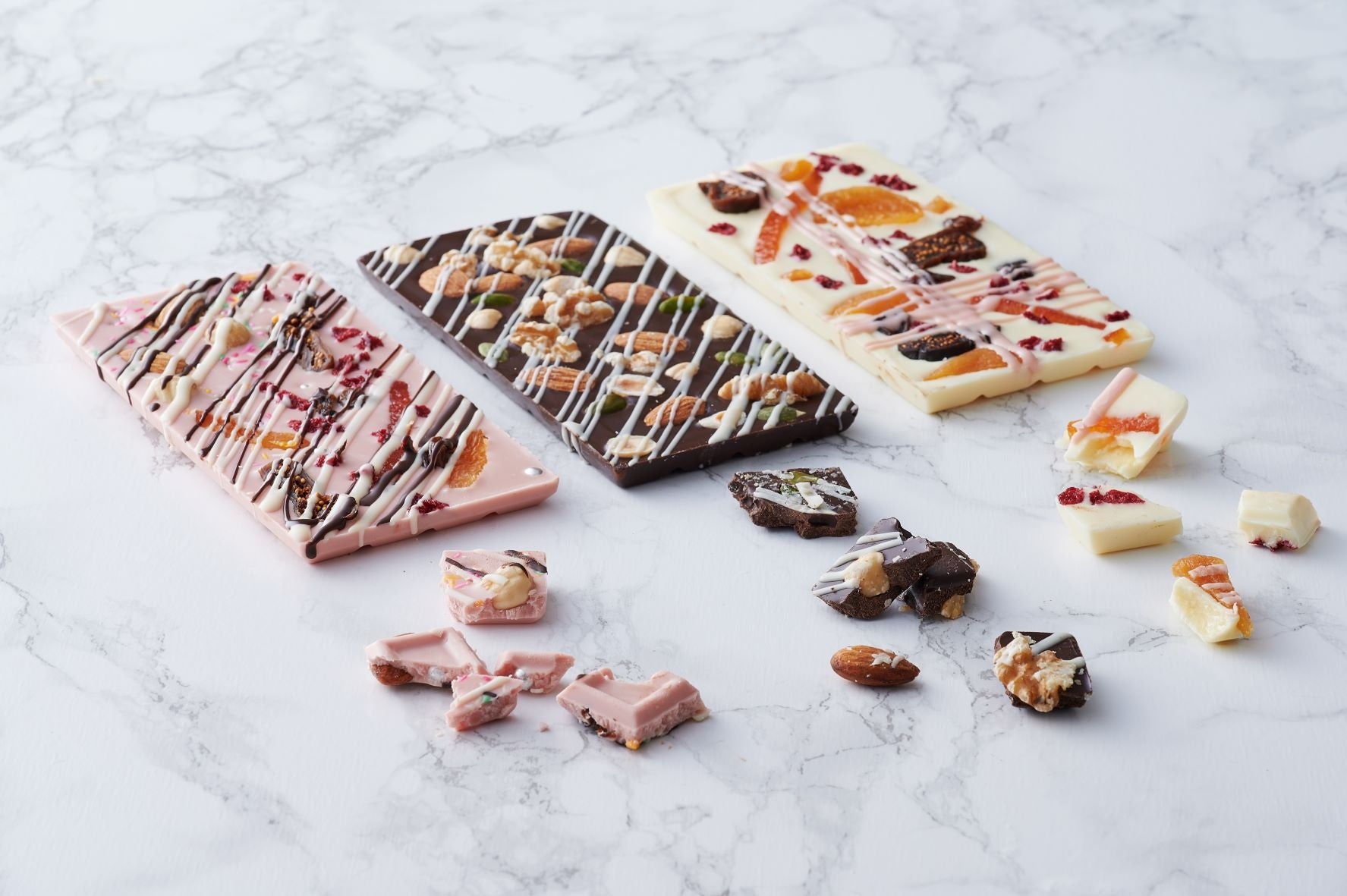 ・(左)ルビーチョコレート:アーモンド・オレンジピール・フィグ・ラズベリー